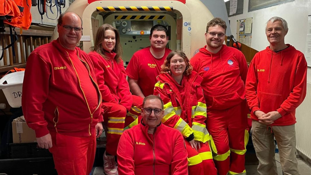Am Freitag machten sich unserer Einsatztaucher auf den Weg nach Würzburg. Dort betreibt die DLRG eine spezielle Druckkammer, mit der sich ein Tauchgang in große Tiefen realistisch simulieren lässt. So konnten unsere Taucherinnen und Taucher einen Tiefenrausch unter kontrollierten und sicheren Bedingungen erleben – eine Erfahrung, die im regulären Trainingsalltag kaum möglich ist.